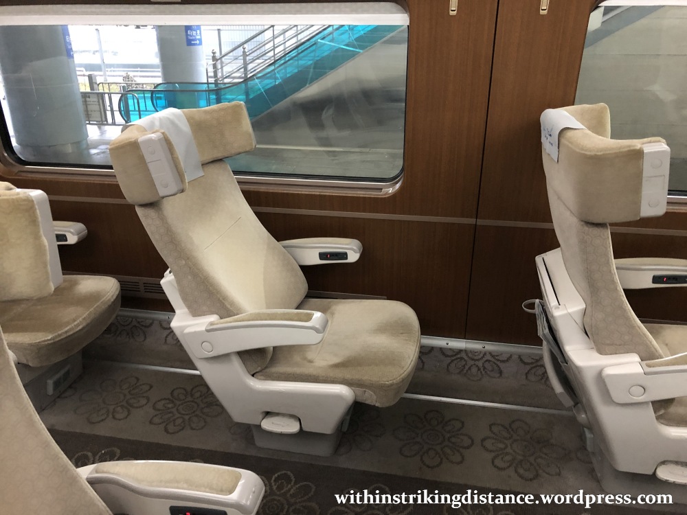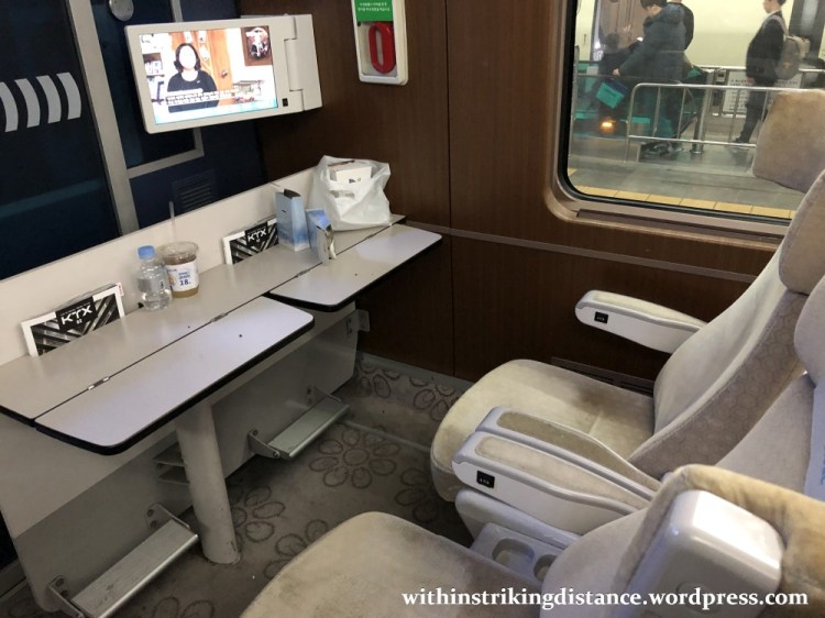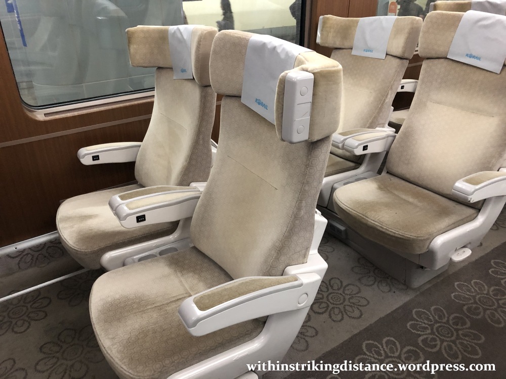 …and now First Class on a second-generation KTX-Sancheon train. (Click here to peek into a First Class carriage on an older, first-generation vehicle.) There are some differences in the seat equipment and fittings, but there’s minimal variance where comfort and service are concerned.