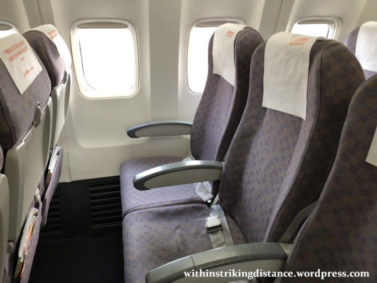 The cabin was in fairly good shape, though not quite pristine, and perhaps a little less well maintained than the interiors of the newer plane we used for the Korea-bound leg. That said, there didn’t seem to be any major damage: a ding here, a scratch there, that sort of thing.