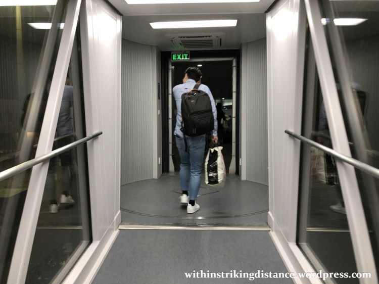T1’s ageing all-metal aerobridges are being progressively replaced with brand new glass-and-steel tubes, like the one fitted to our gate.