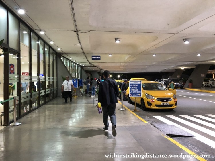 Right outside the arrivals lobby is a sheltered road where one might hire a taxi. Note that the yellow airport taxis cost quite a bit more than the white regular taxis, but are advertised as being safer and more reliable since these require special permits to operate from MNL’s terminals. That’s not to say that every white taxi driver will try to scam you or drive recklessly (far from it!) or that every yellow taxi driver does his duty by the book (some might, for example, still try to negotiate an expensive rate and keep the metre off), so using one or the other is really down to personal judgement.