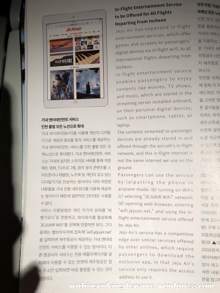 In any event, there’s the in-flight magazine to keep you busy – though most of the pages are in Korean.