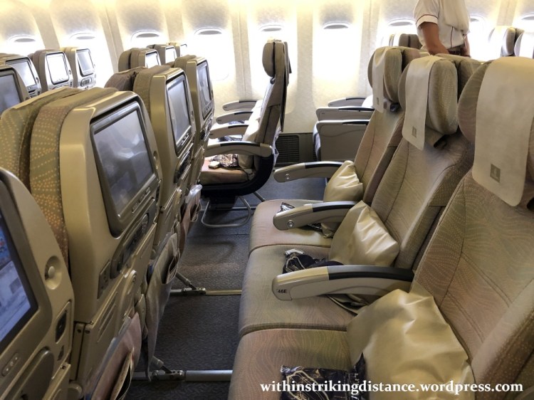 Reasonably comfortable, with adjustable head pillows and sufficient recline. Legroom and width were adequate for my needs, though I should point out that I’m not a particularly tall or wide fellow. If memory serves, the armrests could be fully raised, which might be relevant for those sitting in otherwise empty rows who’d like to spread out a bit. (That said, I’m not certain if the cabin crew would permit passengers to stretch themselves across multiple seats, especially with the occasional risk of turbulence.)
