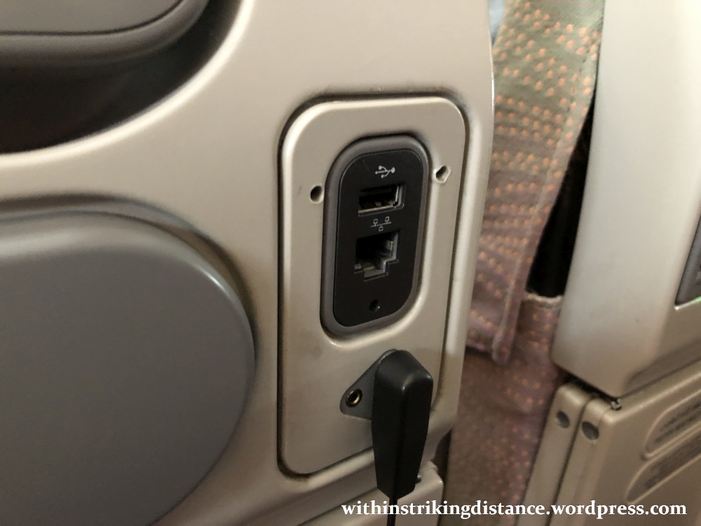 My window seat wasn’t equipped with a power point, but the middle seat to my right had one. Bizarrely, it also had a modular connector, the purpose of which I couldn’t quite fathom (at least not in this particular setting).