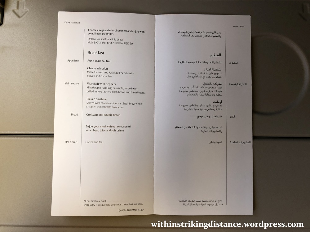 The DXB-AMM segment was much shorter than our initial MNL-DXB leg, so there was just one meal on the menu (and no mention of in-between snacks).