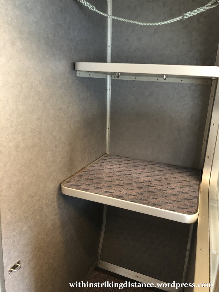 These shots are of the Green Car, with a roomy 2+1 seat configuration (versus 2+2 in the Ordinary compartments). As befits a tourist-orientated train, there are luggage racks near the end of the car, but do note that space is limited.