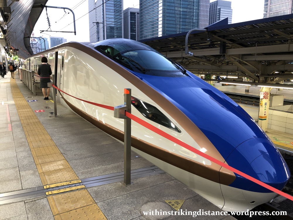 Here’s the beast that will take me to Takasaki: an E7 Series Shinkansen train, preparing to depart as the Hakutaka 551 service. This particular set is F9, delivered in 2014.
