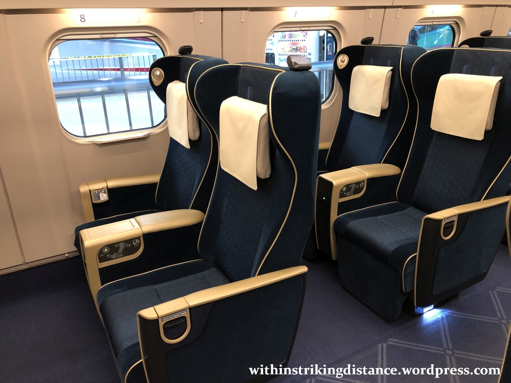 And here we are in the Green Car. Note that the Ordinary compartments will have a tighter arrangement of 5 seats to a row, with less floor space and more basic equipment (no leg rests, etc.).