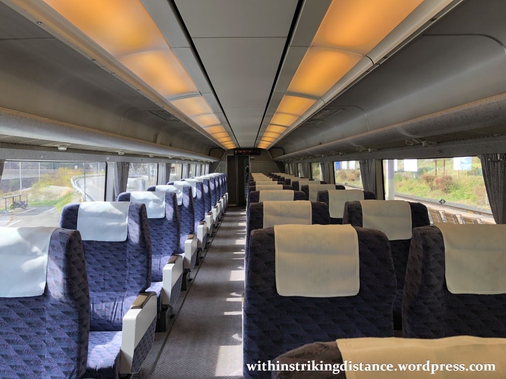 These shots are of the Green Car, with a roomy 2+1 seat configuration (versus 2+2 in the Ordinary compartments). As befits a tourist-orientated train, there are luggage racks near the end of the car, but do note that space is limited.