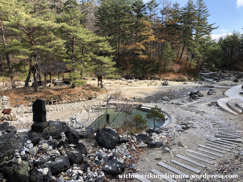 Nestled in a small valley west of the town centre is Sai-no-kawara-kōen (西の河原公園), a rocky riverbed sprinkled with bubbling pools and rippling streams of hot spring water.