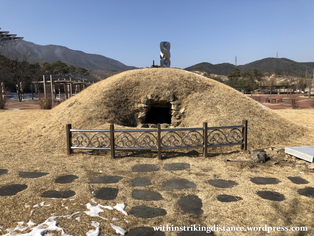 …namely, a tomb mound with a stone-lined burial chamber dating from the Three Kingdoms period (painstakingly relocated here from its original site at Bangnae-ri).