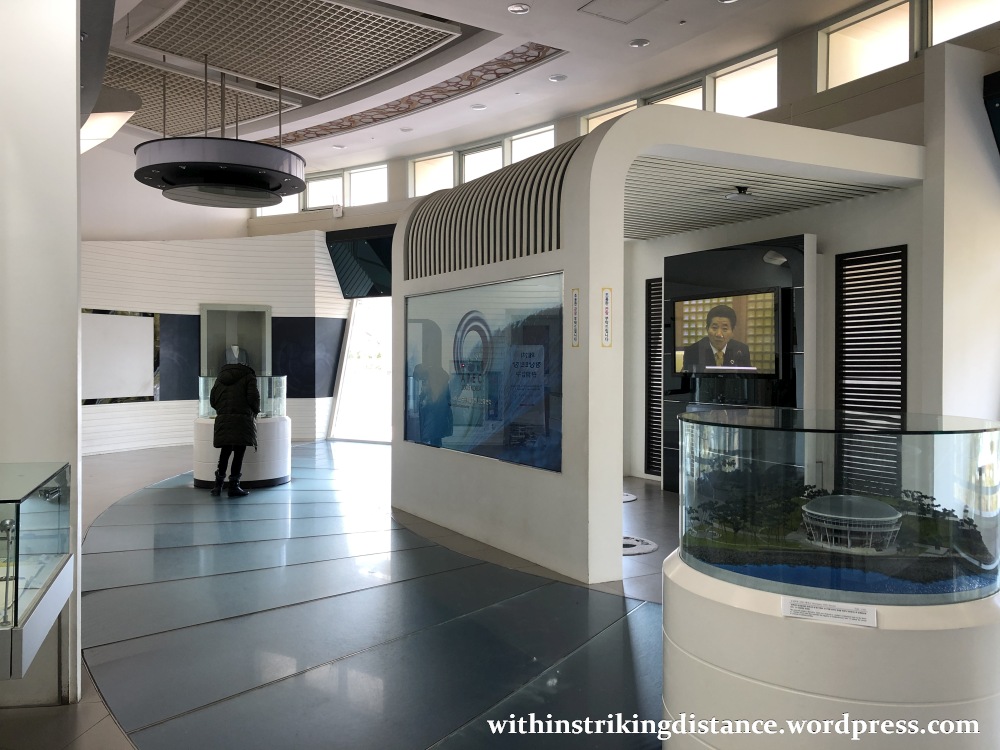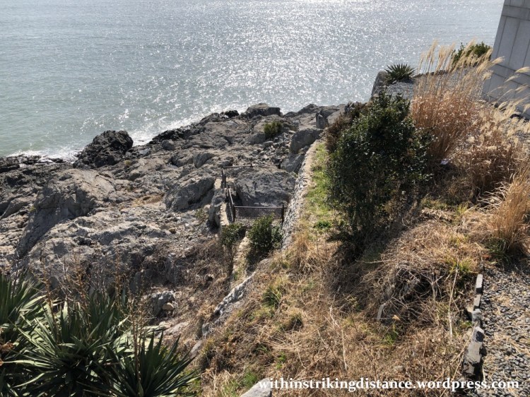 …then down a set of stairs to ground level, right next to the rocky shoreline. There are walking paths and even a traditional Korean pavilion here – all designed, perhaps, as a refuge for world leaders and summit delegates when things get too heated up in the conference hall.