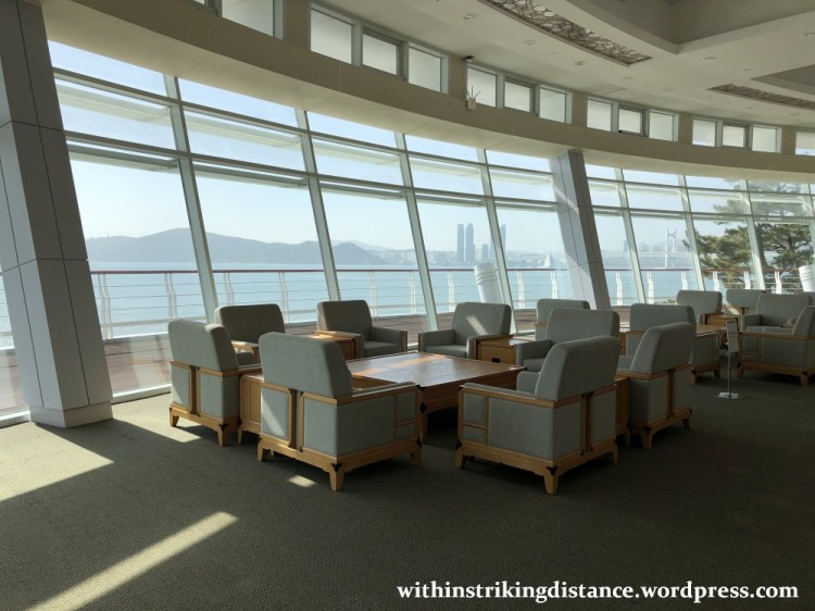 The Nurimaru APEC House, with the massive Gwangandaegyo – one of Korea’s longest bridges – just to the left (but far off in the distance), Busan’s soaring skyscrapers peeking out from behind, and further back, the jagged outline of the mountains that form a natural backdrop to this thriving coastal city.