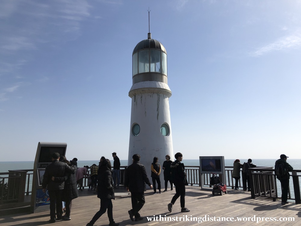 Now you might have observed a small white lighthouse in one of the photographs above. After going back up to the top floor and leaving the building by way of its main entrance, I walked a short distance east and arrived at a wooden platform adjoining the lighthouse.