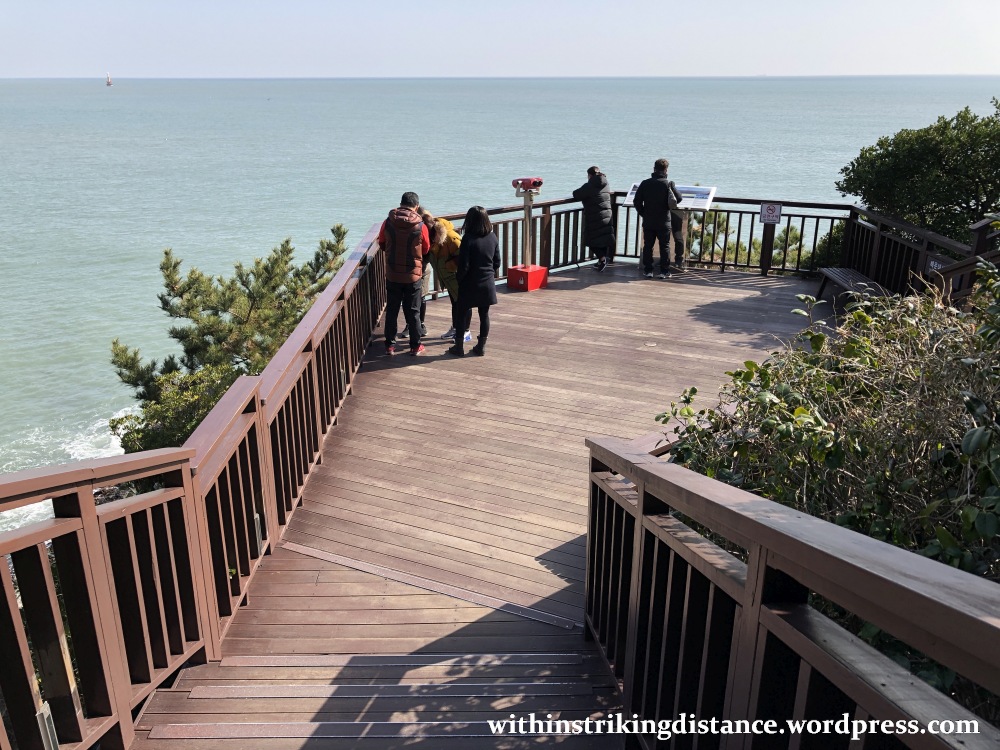 This platform is just one in a series of observation points built along the southern and eastern shores of Dongbaekseom. From another deck near the lighthouse…