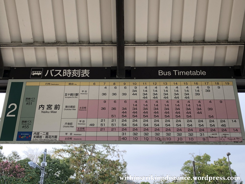 After leaving Gekū, I crossed the street and waited at the designated stop to catch a bus bound for my next destination. I’ve included pictures of the schedule and fare table for reference, but – needless to say – the details are subject to change without prior notice.
