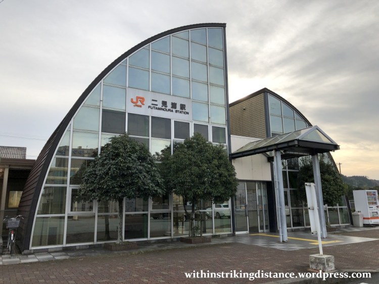 Unlike the Kintetsu line, which swings inland after Ise-shi and cuts through the mountains, the JR line angles north towards the sea as it marches east before meeting the Kintetsu line again near Toba. This puts JR trains within striking distance of two key attractions on the coast – the famed Meoto Iwa (“wedded rocks”) and the Meiji-era Hinjitsukan guesthouse – via Futaminoura Station.