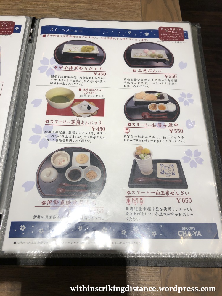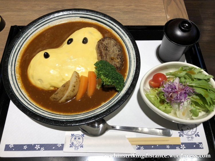 And my word, this set meal was filling. Between the omurice and the thick hamburger patty and the vegetables and the sauce – and let’s not forget the soup and salad – there was no room to spare for dessert, much as I wanted to try one of the tempting Snoopy-themed sweet offerings on the menu.