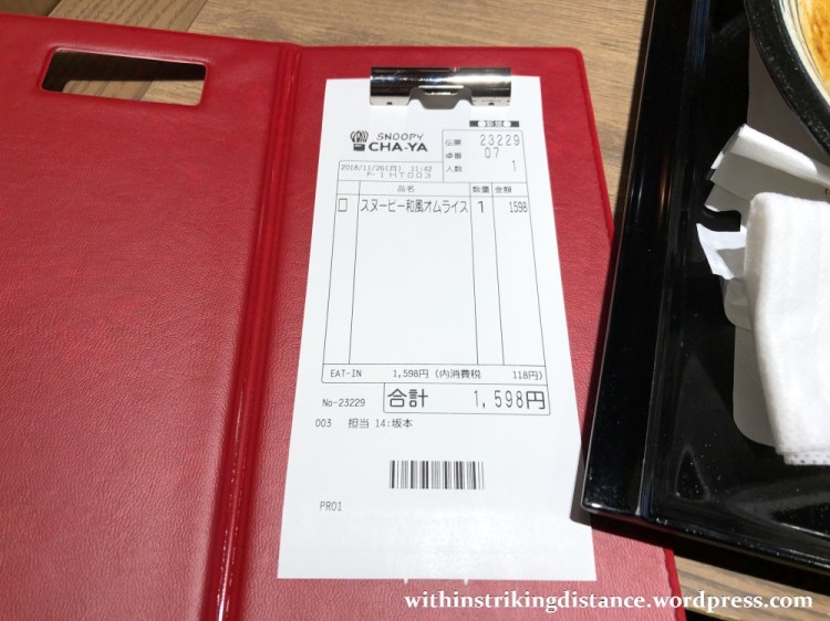I paid a bit more than I would have for a cafeteria-cooked or convenience store-bought omurice meal, but hey … setting, theme, presentation, taste, and portion size considered, I’m one happy Peanuts fan.