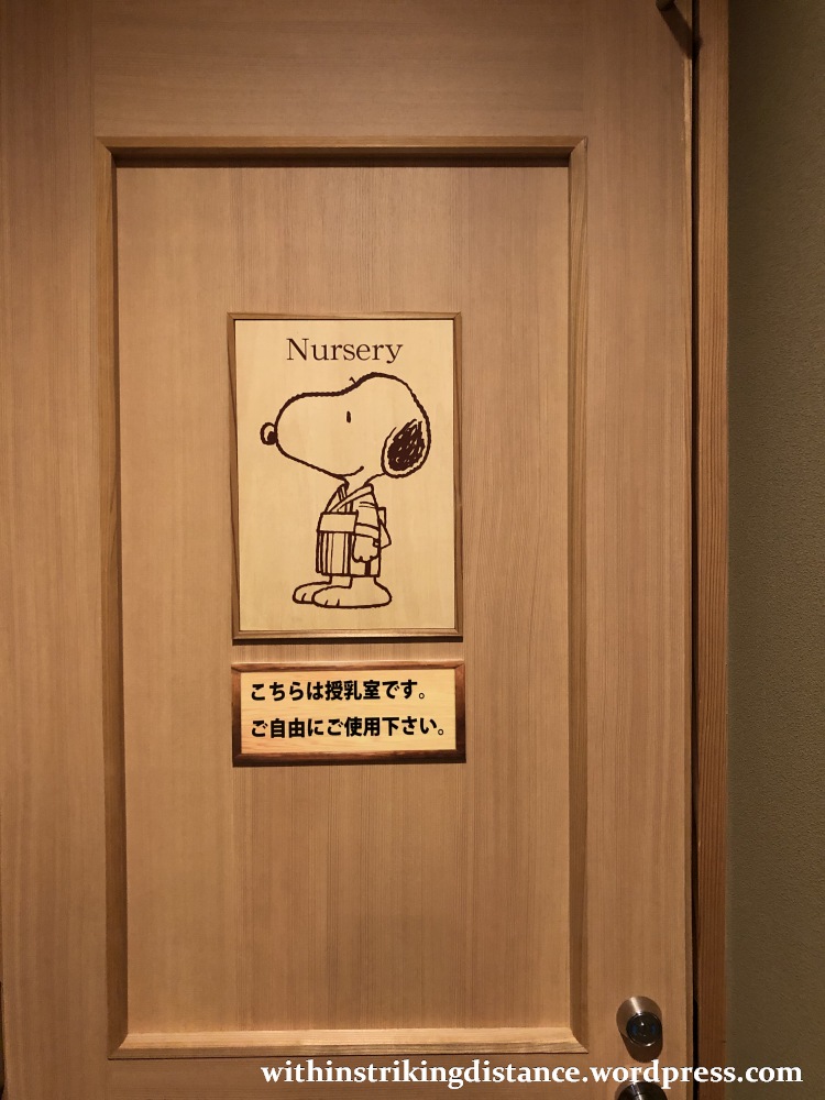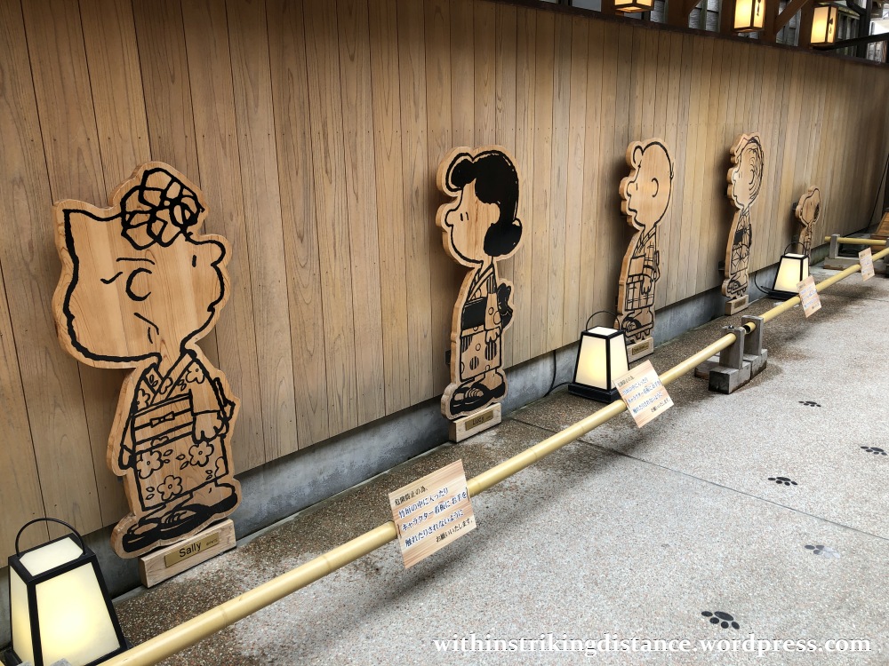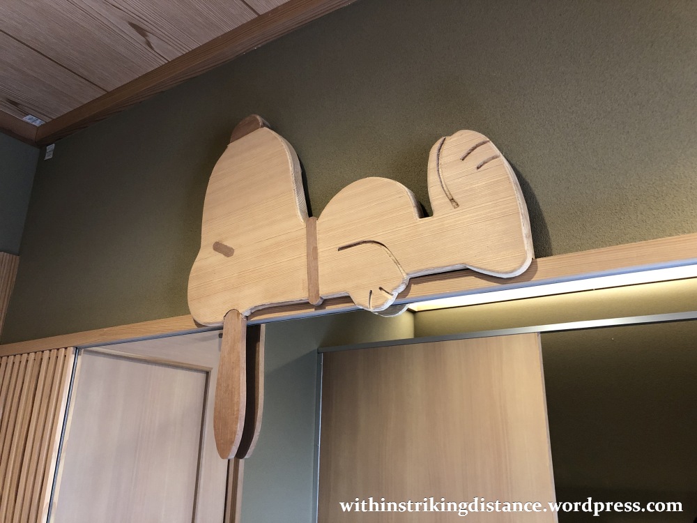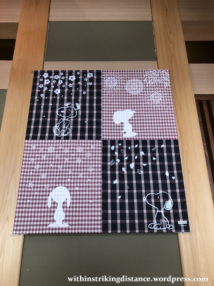 The door on the left leads into a shop filled with all sorts of official merchandise, including a wide range of items that combine traditional Japanese artistry with Peanuts/Snoopy motifs. The door on the right leads into the dining area.