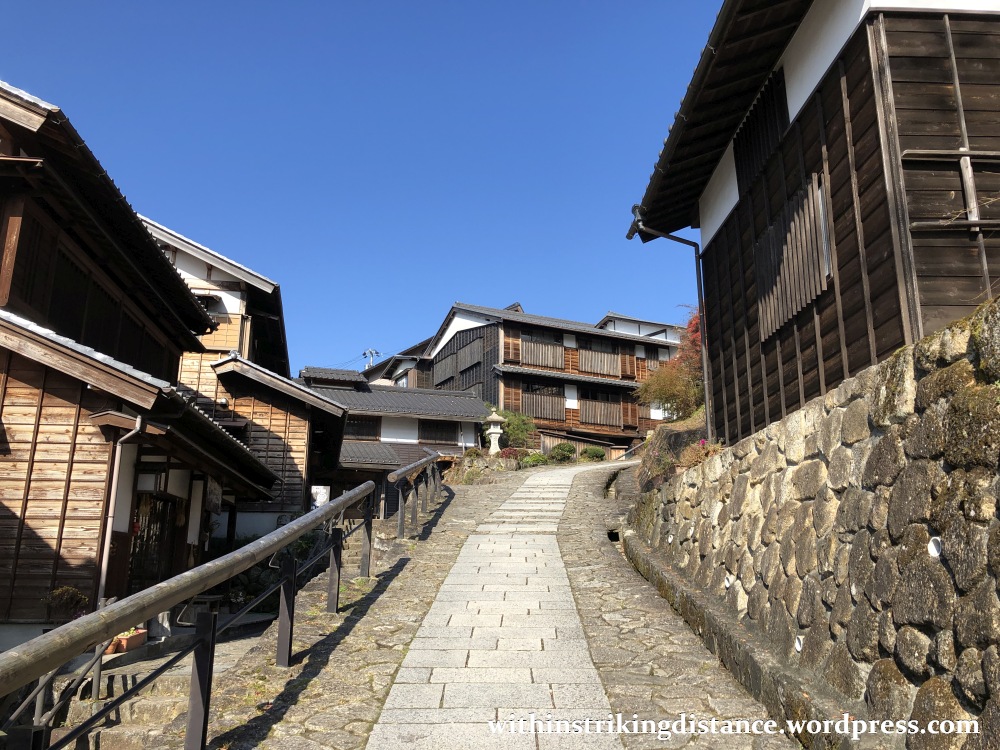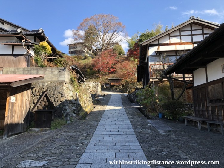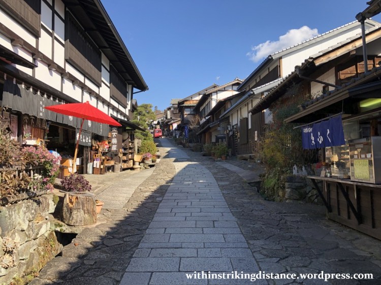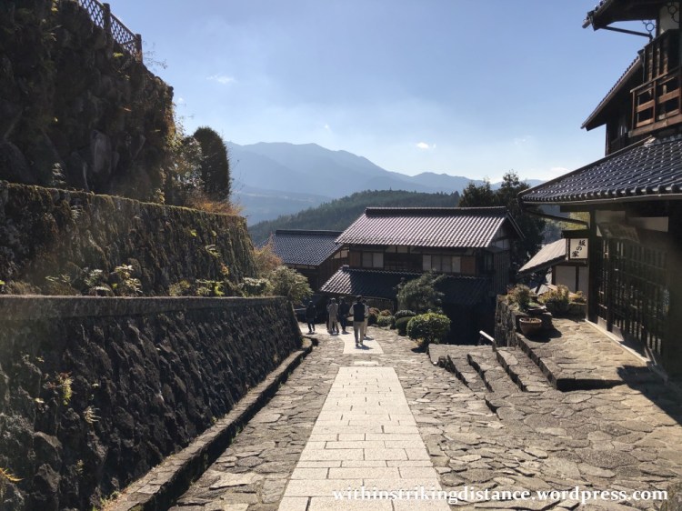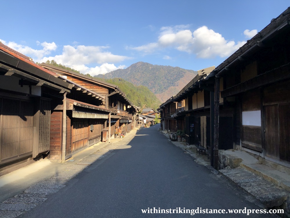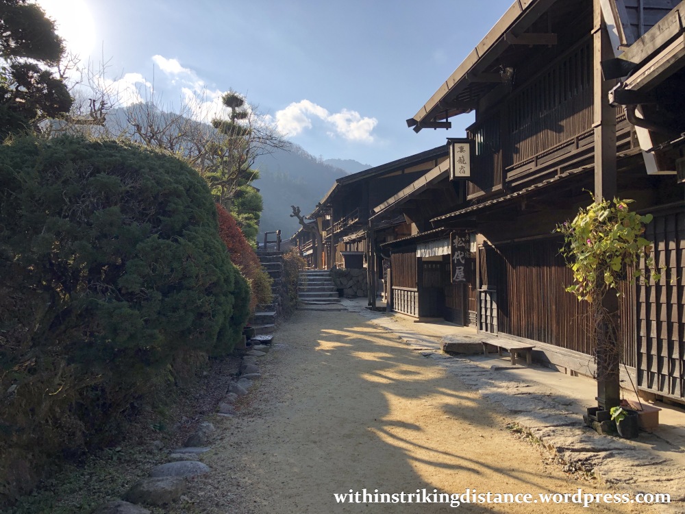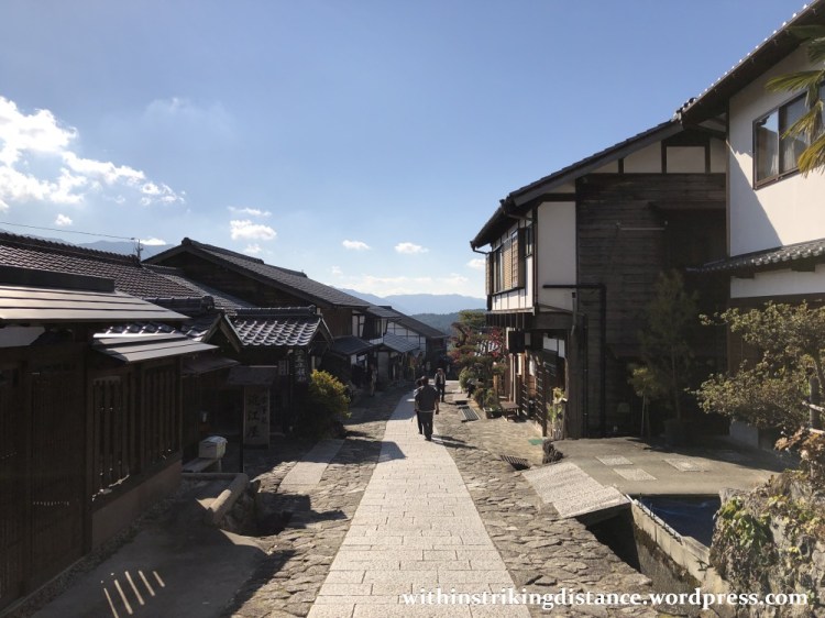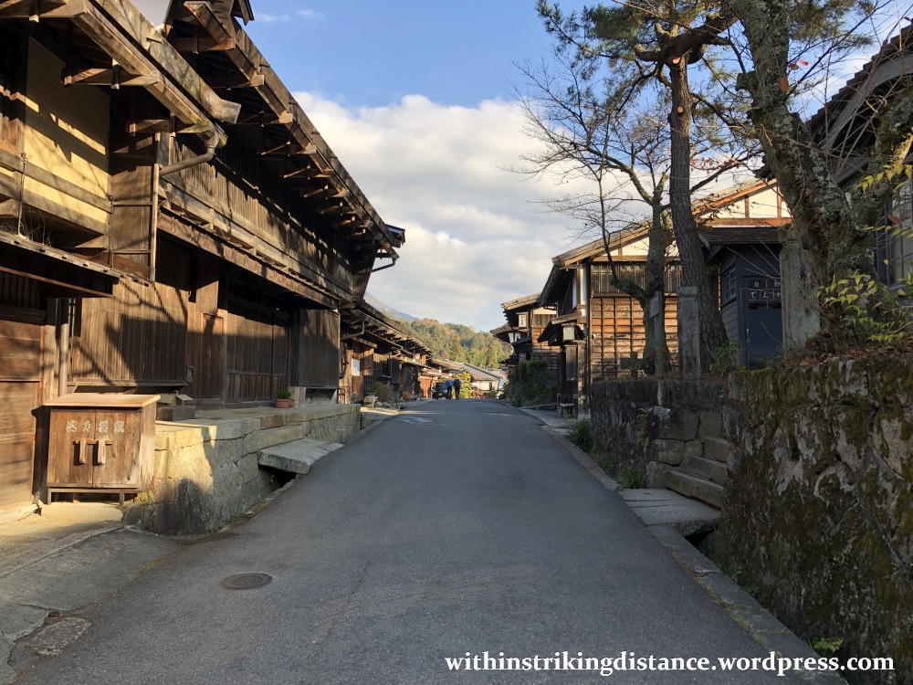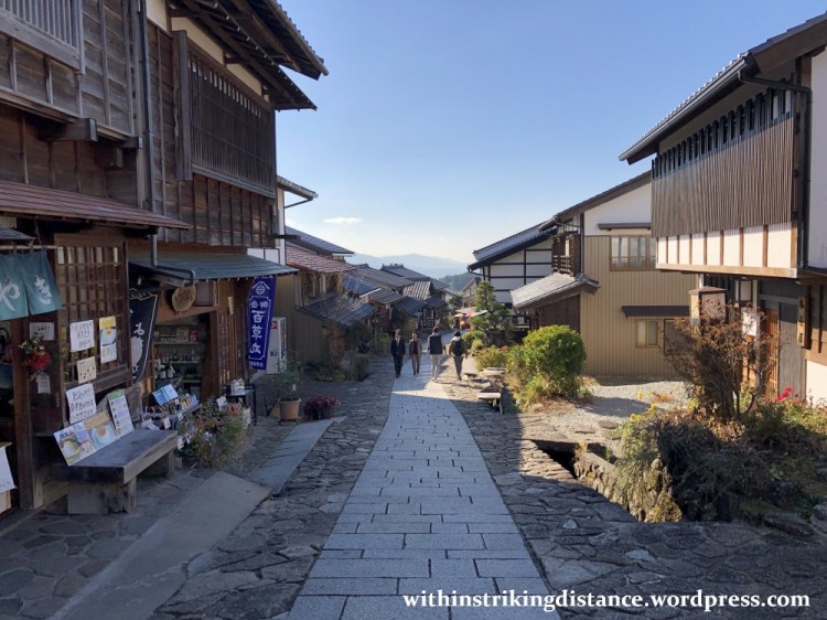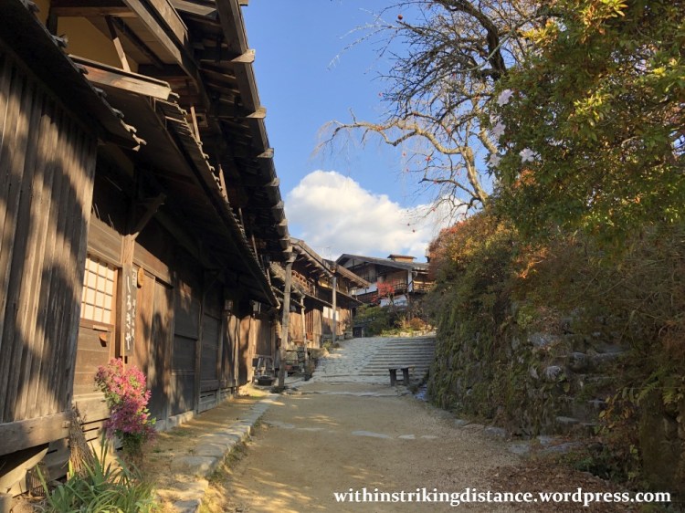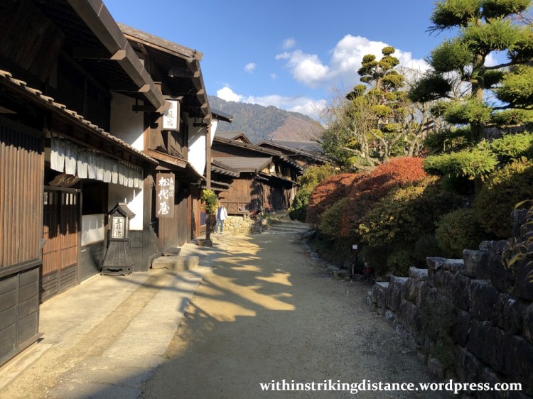 The other difference has more to do with character and atmosphere. As we’ve seen earlier, Tsumago exudes a certain rustic charm with its unpainted façades of age-browned wood and plain-looking main street. Well, plain-looking asphalt-concrete paved main street, but a little imagination might easily transform it – at least in the mind’s eye – into an unpaved dirt or gravel road, somewhat closer in spirit to its Edo Period predecessor.