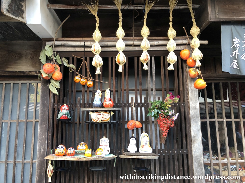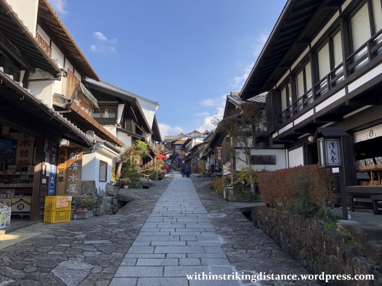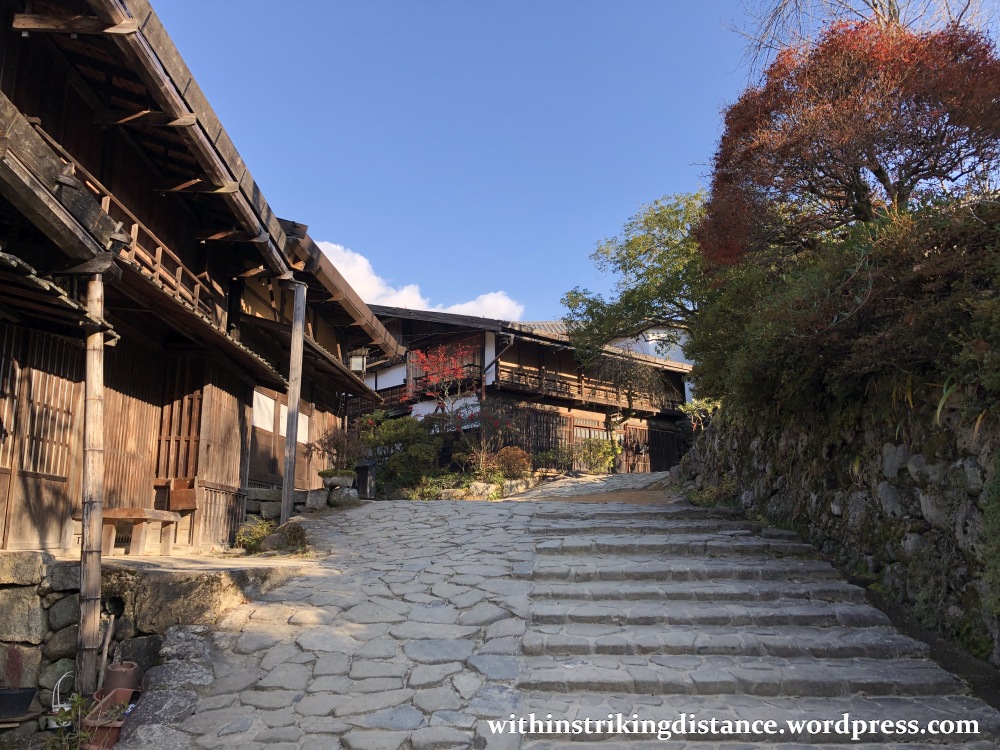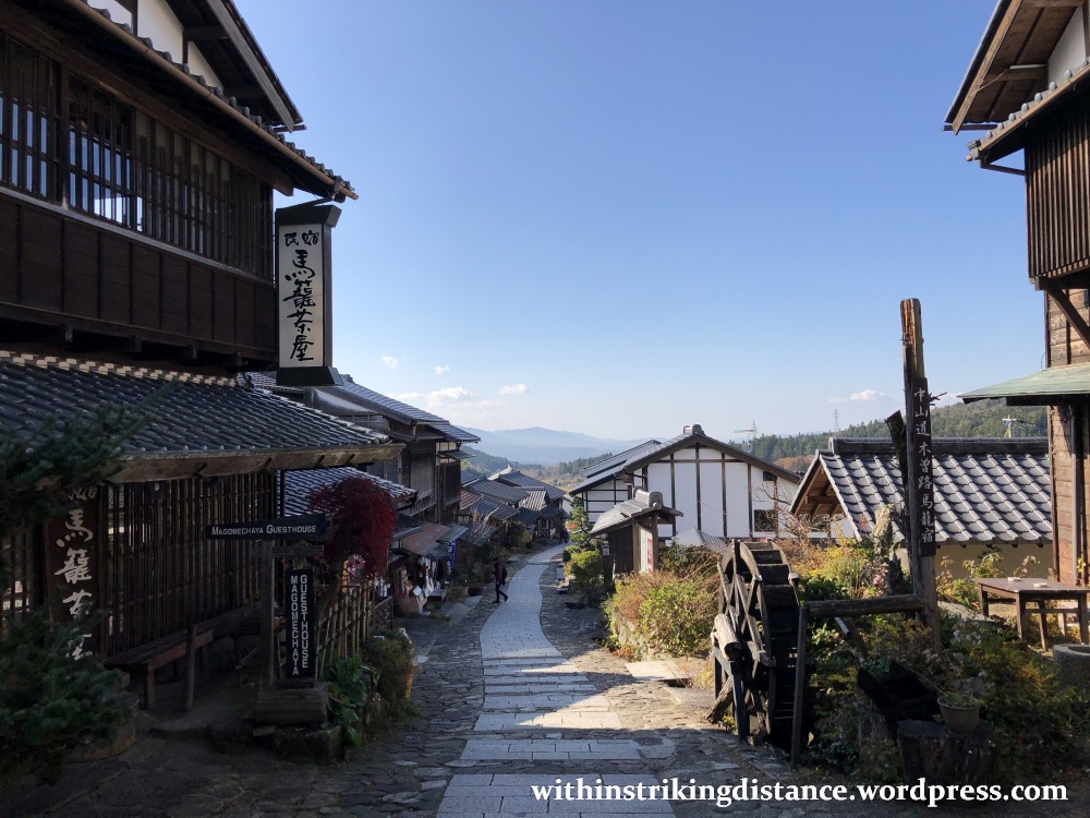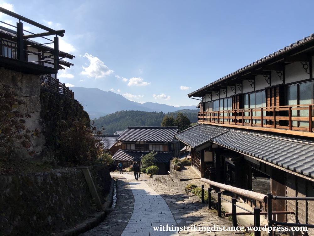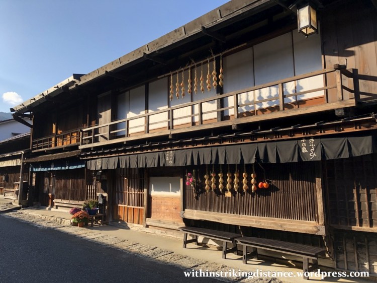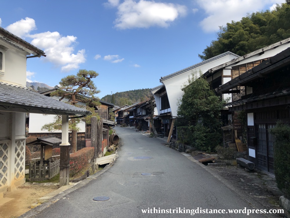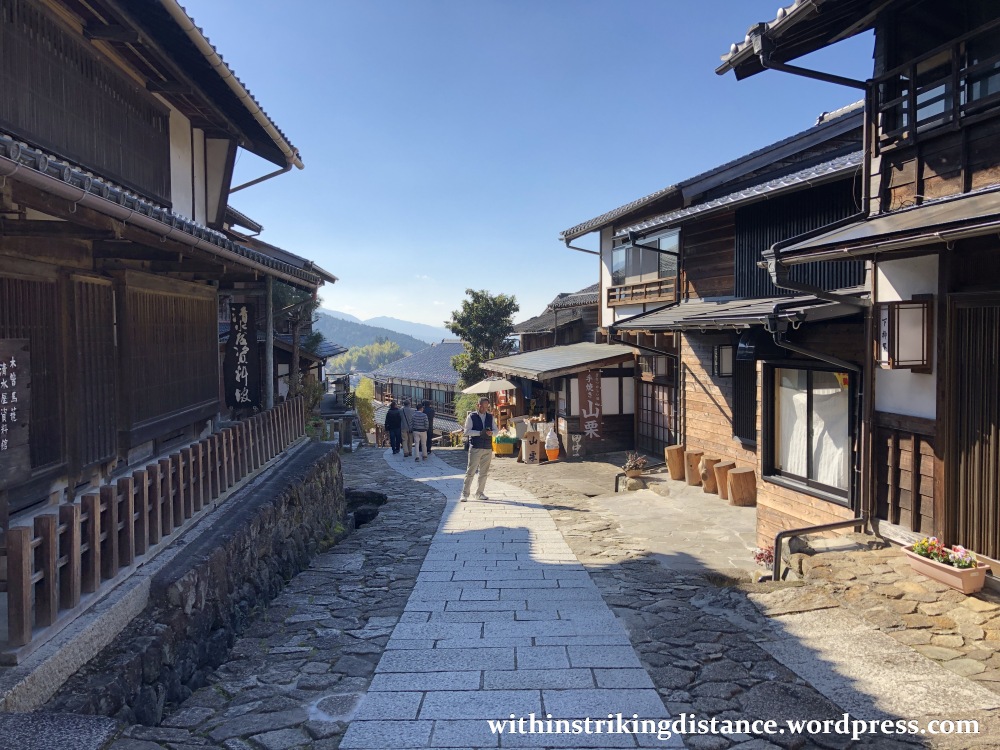 The other difference has more to do with character and atmosphere. As we’ve seen earlier, Tsumago exudes a certain rustic charm with its unpainted façades of age-browned wood and plain-looking main street. Well, plain-looking asphalt-concrete paved main street, but a little imagination might easily transform it – at least in the mind’s eye – into an unpaved dirt or gravel road, somewhat closer in spirit to its Edo Period predecessor.