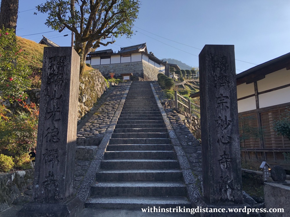 This long flight of stone steps leads to Kōtoku-ji, a small temple compound perched upon a hill overlooking Tsumago.