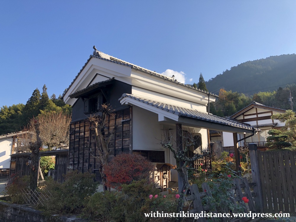 Roughly midway through the town (heading southward), the street kinks sharply to the right before sloping down and straightening out again. This angle is a defensive feature, meant to slow the progress of any hostile forces marching on the Nakasendō.