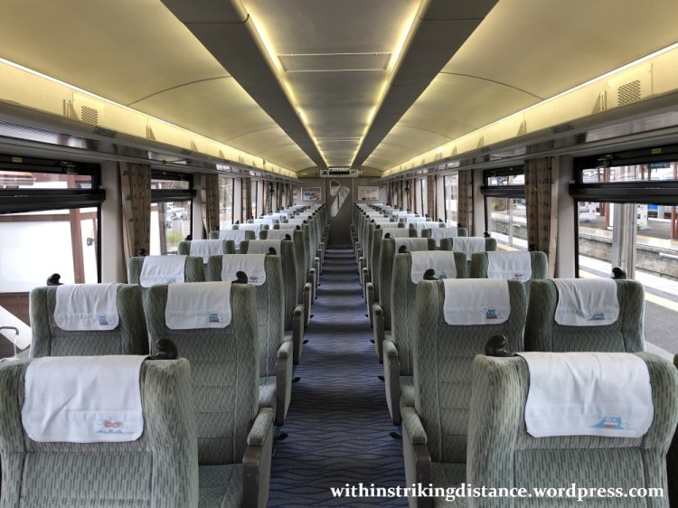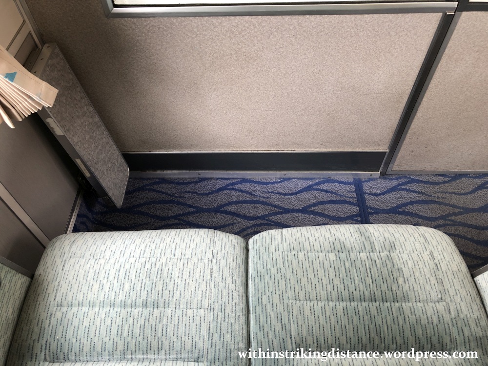 Here’s the interior of Car 3, one of the Fujisan Tokkyū‘s two non-reserved compartments. If you’re using a Tōkyō Wide Pass, you can travel in Car 2 or 3 at no extra cost (since the pass fully covers both the base fare and express fee).