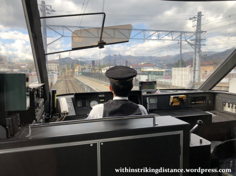 On the other hand, if the seats are correctly orientated (as they were on the Ōtsuki-bound journey), the glass wall in front of this row offers a rather extraordinary view: into, and beyond, the driver’s cabin.