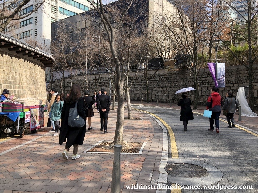 Although an entrance fee is required to enter Deoksugung, pedestrians may use this special walkway free of charge. To keep things fair, physical barriers and patrolling staff – no doubt aided by a barrage of security cameras (both obvious and concealed) – help ensure that ticketless passers-by don’t sneak into the paid area.