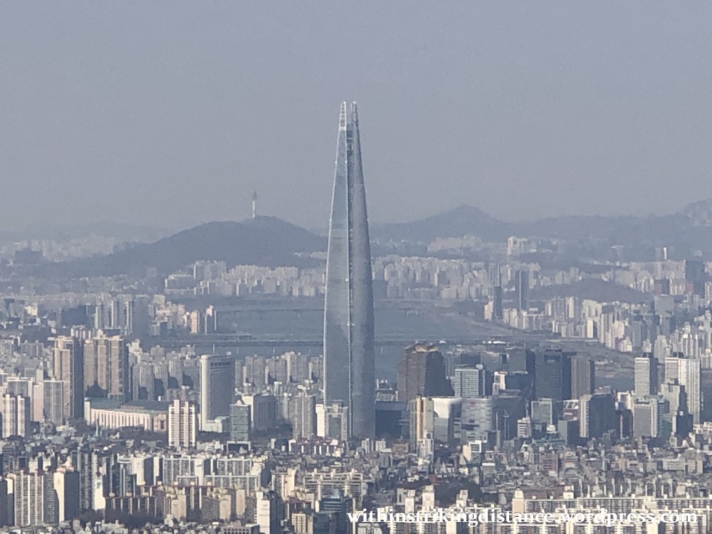 Here’s a close up of the skyscraper in question, with the fuzzy outline of N Seoul Tower poking out from the top of Namsan in the distance.
