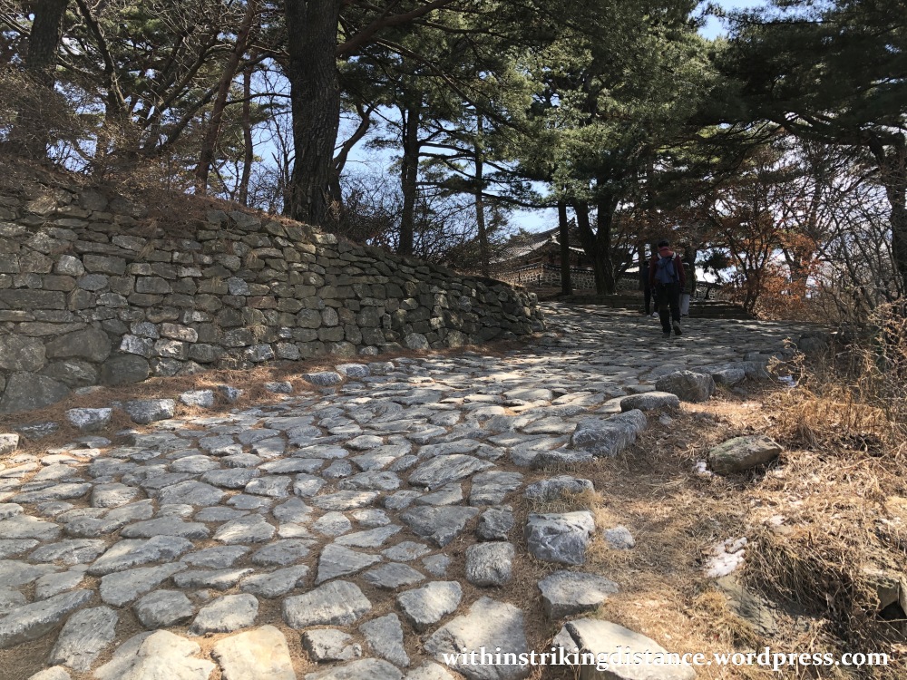 Near the midpoint of Namhansanseong’s western flank, I veered away from the ramparts and turned left up a stretch of road paved with rough stones…