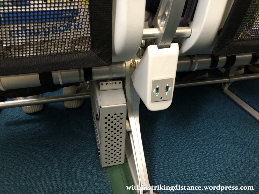 And to keep those devices fully juiced up, they’ve even fitted USB power points under the seats. Note that unlike on the older A321ceo, where the outlets are next to your legs (as shown in this previous flight report), those on the 5J A321neo are in front of you: a far more convenient location that makes them easier to locate (especially in a darkened cabin) and easier to use.