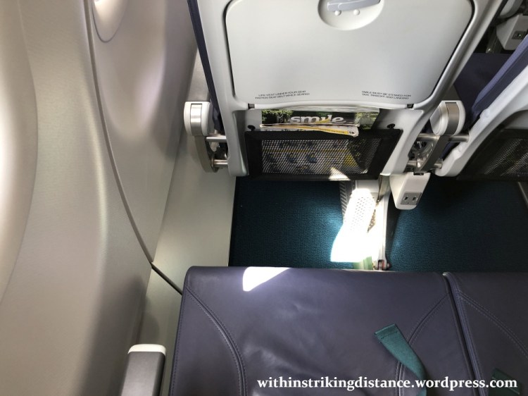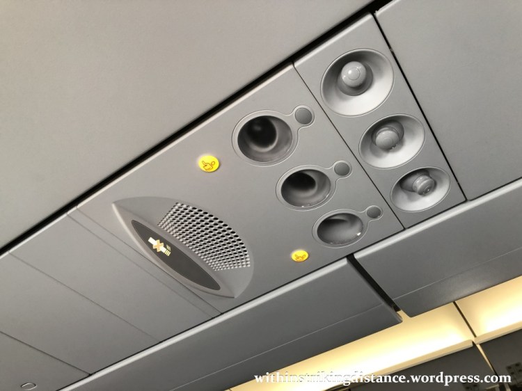 One VERY important thing to bear in mind: the seats on this aeroplane do not recline. (I’m not just referring to the exit rows, but to all seats.) Now I realise that opinions will vary, with different physical conditions and characteristics coming into play; indeed I’ve personally flown with someone who objected to the lack of adjustable recline. That said, where I’m concerned, the predefined 15-degree angle of the Recaro SL3510 offered just the right amount of comfort.