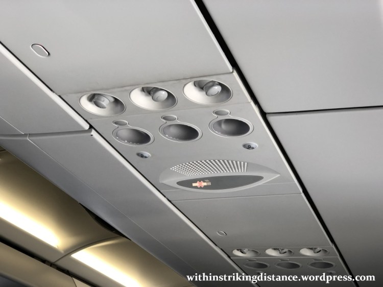 One VERY important thing to bear in mind: the seats on this aeroplane do not recline. (I’m not just referring to the exit rows, but to all seats.) Now I realise that opinions will vary, with different physical conditions and characteristics coming into play; indeed I’ve personally flown 5J with someone who objected to the lack of adjustable recline. That said, where I’m concerned, the predefined 15-degree angle of the Recaro SL3510 offered just the right amount of comfort.