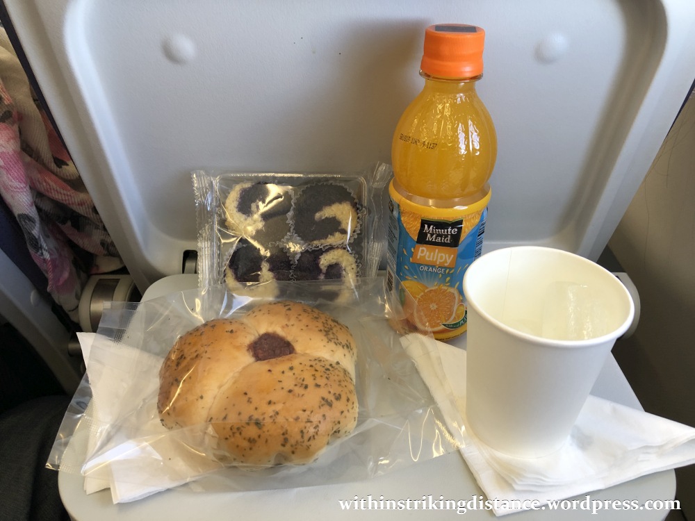 In the end, I realised that I should have pre-ordered something after all – if only because I didn’t bother to eat much at the airport before departure and felt rather famished by the time we were on board. With hot meals unavailable for on-the-spot purchase, I assembled my own light meal from the choices on offer.