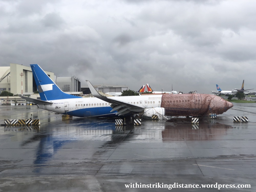 It was also possible to angle my phone camera just enough to take unobstructed shots, which served me well when I did my usual bit of planespotting. For example, here we have the ruined hulk of B-5498, the Boeing 737-800 involved in the Xiamen Airlines Flight 8667 crash landing at MNL in August 2018. Note how the registration number and Xiamen Airlines marks have been scrubbed off.