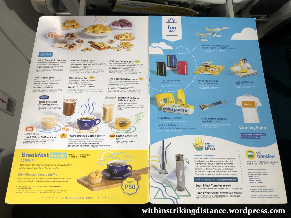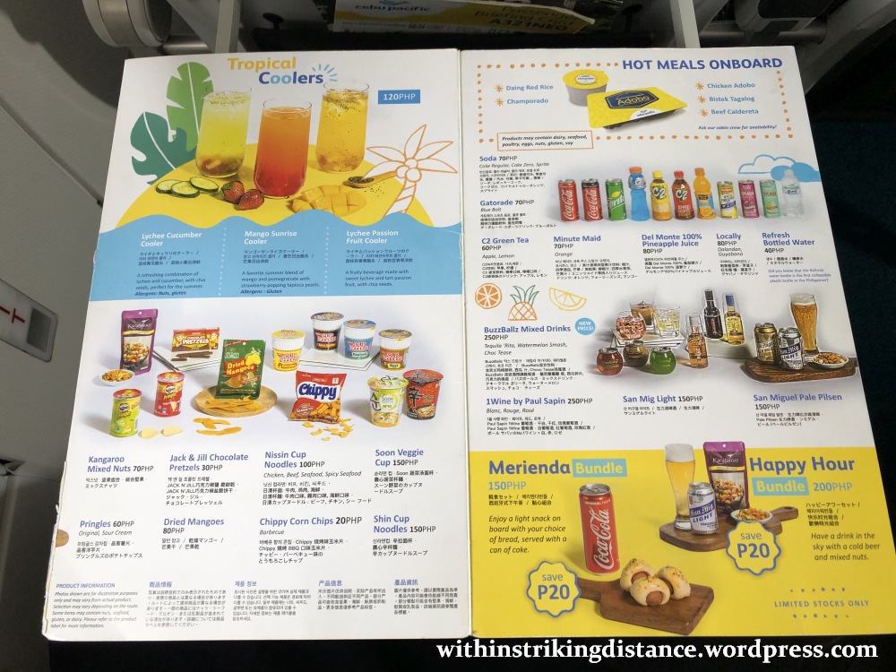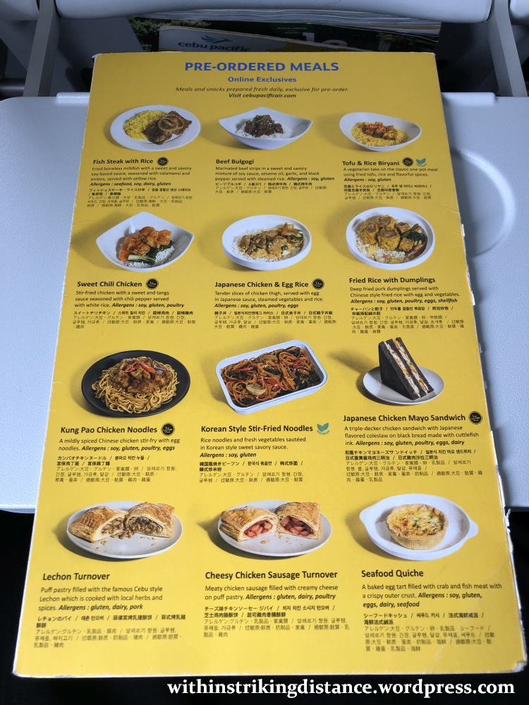 One more thing: the meals and menu featured below were phased out just days later as part of 5J’s regular menu revamp. In my next flight report (for the return leg, NRT-MNL), I’ll share images of the new buy-on-board menu and of two hot meals from the refreshed pre-order line.