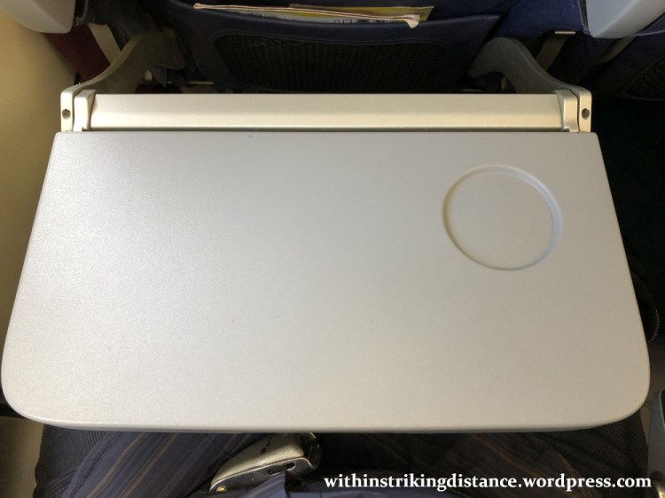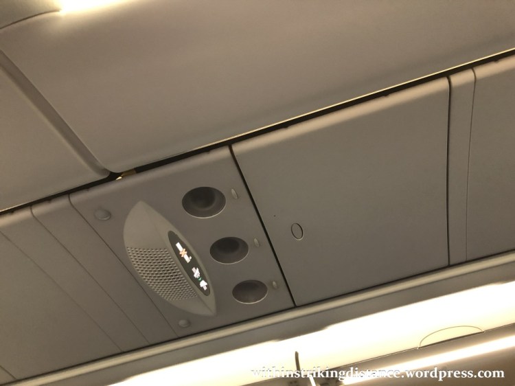 You can tell that this A330, fairly new though it may be, isn’t quite at the cutting edge of 5J’s fleet interiors. Unlike the airline’s newer A321ceo and A321neo aircraft, the tray table doesn’t have a raised ridge for keeping tablets in place (although that makes sense here since 5J’s A330 seats can recline, unlike on their A321s). The A330 is also not equipped with charging ports for electronic devices.