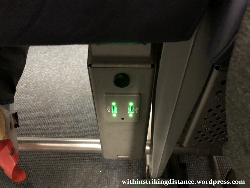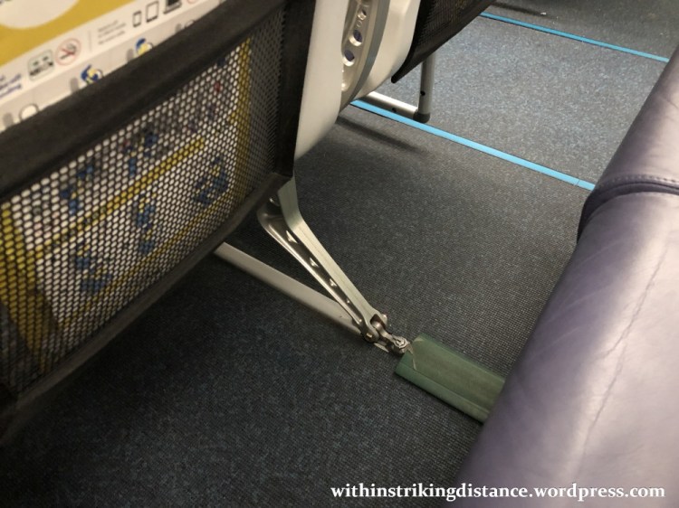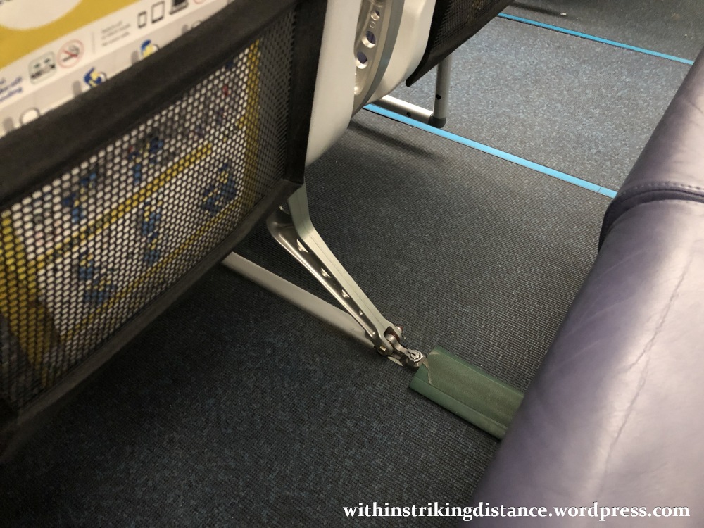 Something to keep in mind: the seats on this aeroplane do not recline. I’m not just referring to the exit rows, but to all seats. Instead, they come with a predefined 15-degree angle that may or may not bring misery to your backside after a few hours. I’m quite happy with the angle myself – far more comfortable than I’d originally feared – though I shall probably want to avoid sitting in one of these on anything longer than a four-hour flight.