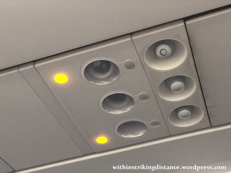 Here’s a shot of the overhead panel. Note the adjustable air vents (which you won’t find on 5J’s larger A330s).