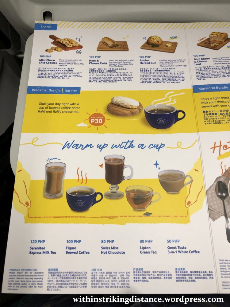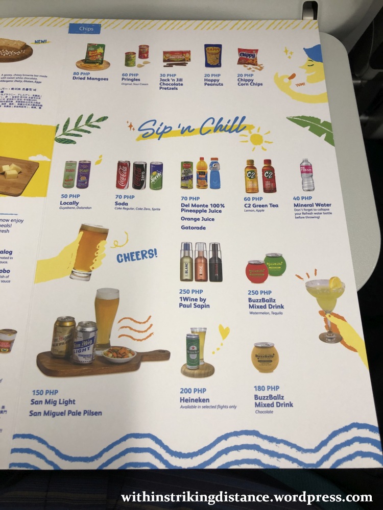 5J have recently reduced the prices of their pre-ordered food, with in-flight meals now going for PHP 249.00 on initial booking (higher if added later) versus PHP 350.00 previously. I decided to splash out a bit and ordered two courses for each flight – not just out of anticipated hunger, but also for the chance to try out more of the airline’s edible offerings.