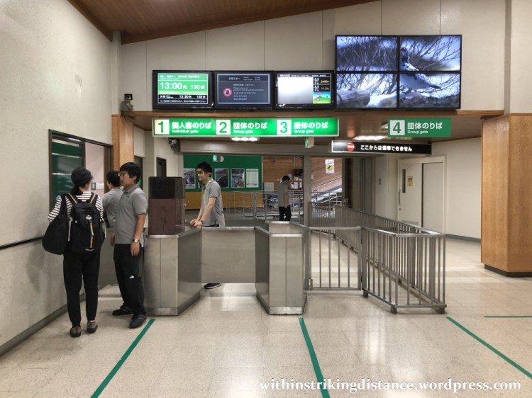 That was no mistake on my part. You can’t simply walk onto the cable car platform and board the next Bijodaira-bound service, not even if you’ve got a Tateyama Kurobe Option Ticket. Whether you’re paying the fare directly (as I did on this occasion) or using the option ticket (as I did on another journey), you’ll need to approach the ticket office – which is located just outside the station’s main doors – and request a scheduled boarding ticket.