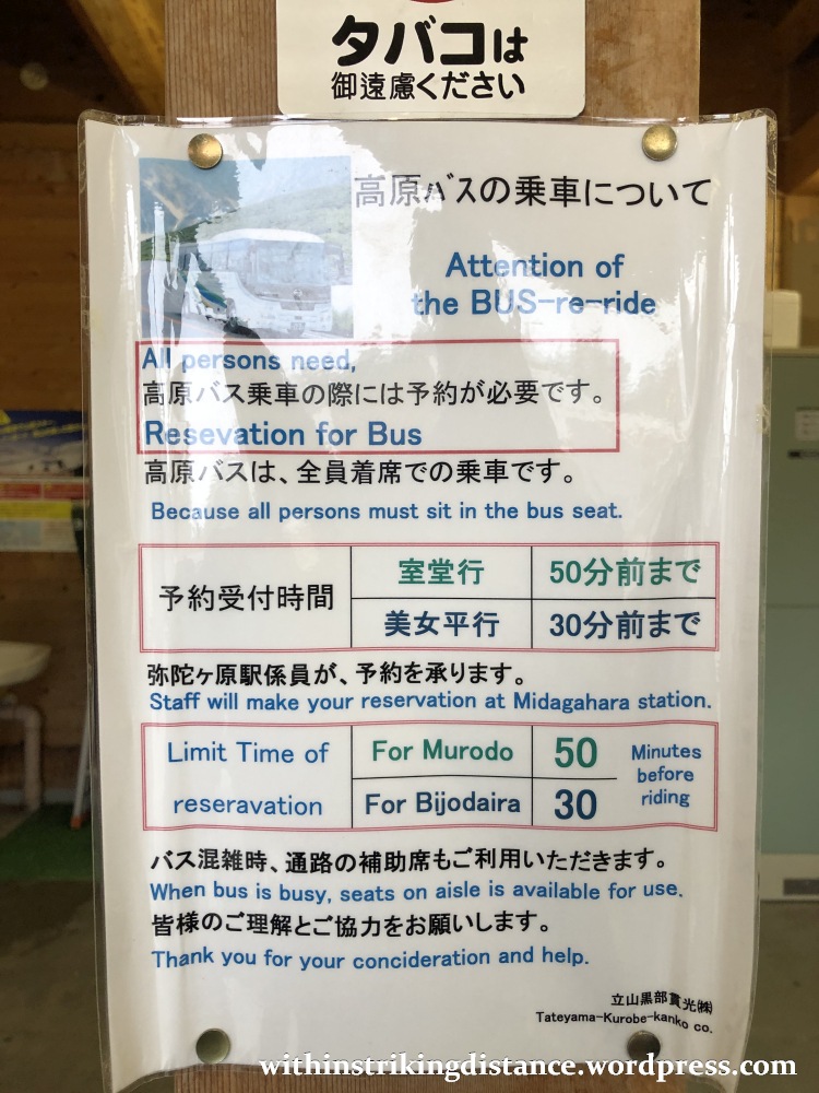 Now let’s discuss something VERY important, something you’ll need to do straightaway if you’re not staying the night at Midagahara – namely, securing a place on the bus for the journey back (or journey onward).