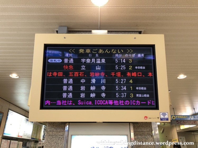 I wanted the earliest possible start and aimed for the very first train: a 0525 service bound for Tateyama. Oddly enough, whilst operationally a special service as noted on the information board (second train from the top)…