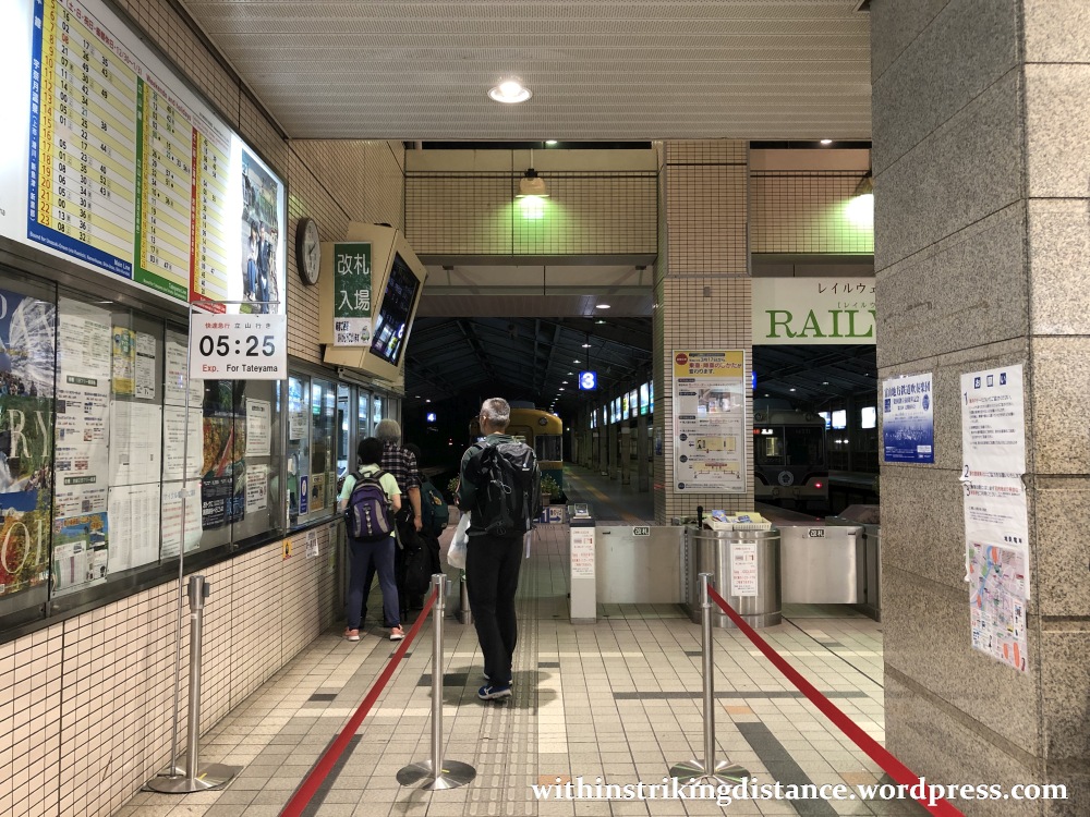 One more thing before we set off. You’ll observe that the signs and lane markers in the following pictures are mostly in green. That’s part of a colour-coding scheme in place across the Alpine Route, designed to aid travellers who might be confused as to which door or queue or platform to head for (especially at transfer points). Green signs are for eastbound travel, from Toyama/Tateyama towards Ōgizawa/Nagano. Blue denotes westbound, for those heading the other way. If you’re using the Option Ticket – which is valid for a single one-way journey – it’s important to stick to the one direction (hence the one colour) all the way, lest you accidentally end up going in reverse at any point and becoming liable to pay extra charges.
