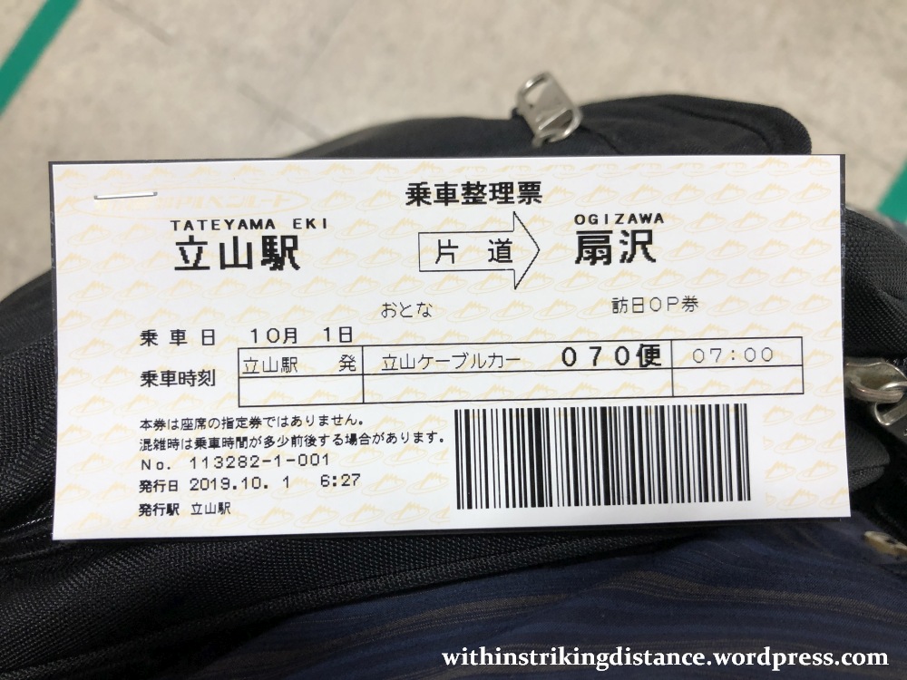 Unlike on my previous side trip to Midagahara – for which I’d purchased a ticket on the spot – no cash changed hands here. My Option Ticket covered the full fare for the boarding card I received.