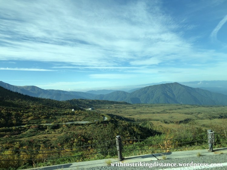 Needless to say, things were rather different after we passed Midagahara (which was as far as I’d gotten the last time). To start, I was treated to a wider view of the Midagahara wetland – the flat expanse spreading from the centre of the image all the way to the right – once we’d reached a stretch of road overlooking the area.