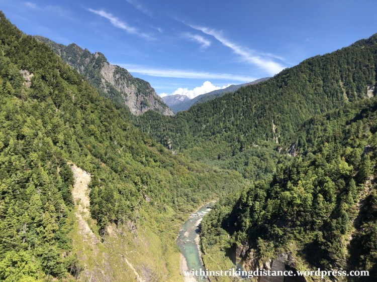 Looking north, facing downstream, one is rewarded with a glimpse of the untrammelled Kurobe River and the thickly forested slopes rising up from either bank.