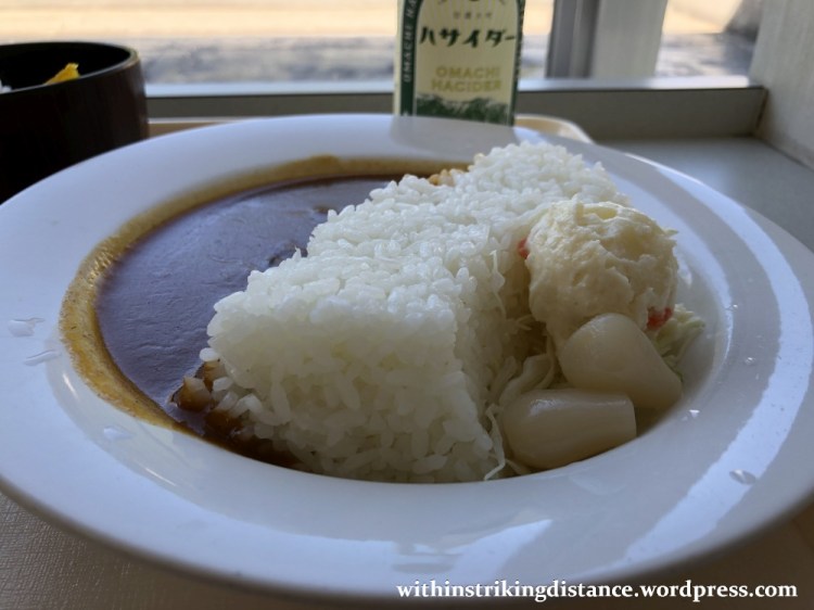 And here we are! My selections: a dish of “Arch Dam Curry” (900 yen) and a bowl of extra rice to enjoy with the curry sauce (210 yen). To wash everything down, I picked up a bottle of local cider (200 yen) from the refrigerator.